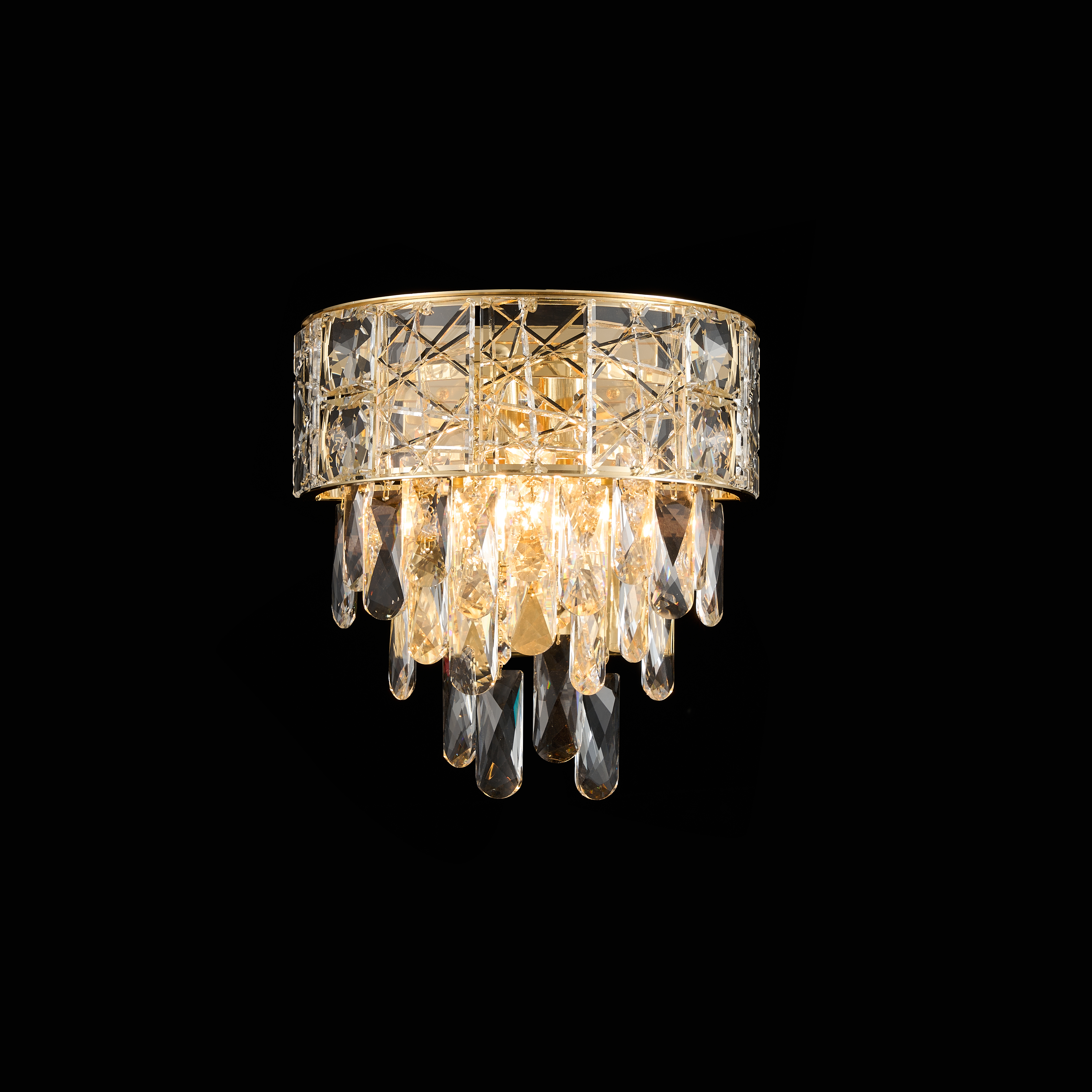 Роскошный дизайн хрустальных люстр и бра Elysium неминуемо будет притягивать к себе взгляды. Каждый элемент этой коллекции тщательно продуман, чтобы создать атмосферу изысканности и элегантности: золотой каркас удачно дополнен декоративным ободком из прозрачных стеклянных пластин с геометрическим узором и каскадом из крупного хрусталя изысканной формы. Отражая свет, он создаёт волшебные блики, играет с тенями и обретает свой завораживающий вид.
