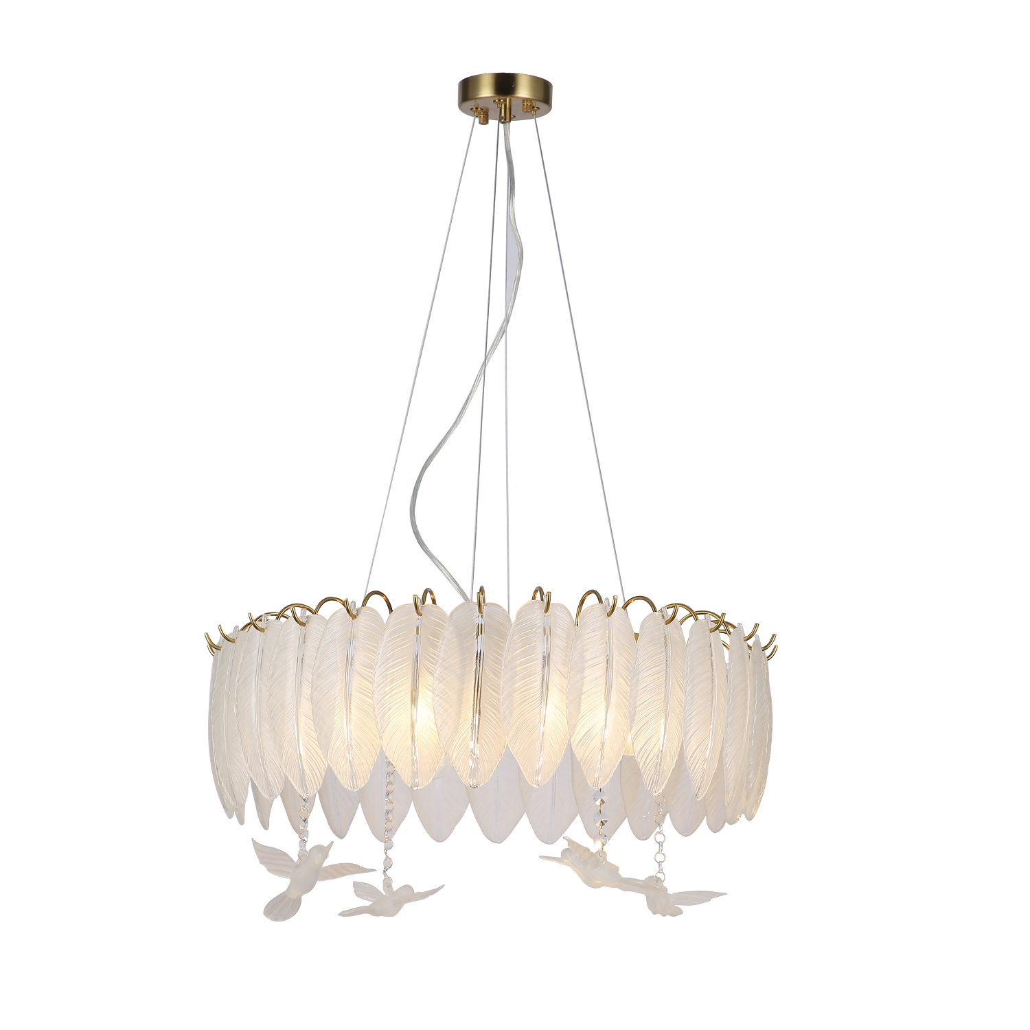 Коллекция Philomela создана в стиле флористики из белого полупрозрачного стекла. Каркас цвета меди. Декоративный элемент – парящая стеклянная птичка. Каждый лепесток обладает крупным размером и изготавливается вручную. Это изысканная нежная и воздушная коллекция украсит гостиную или спальню в стиле неоклассики.