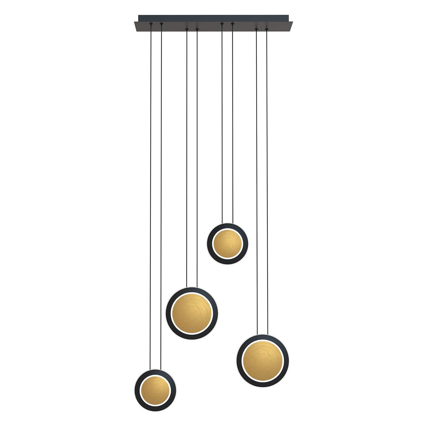 Коллекция Elation предлагает две модификации светильников — на 4 и 6 плафонов. Каждый плафон в форме диска оснащен тремя встроенными LEDлентами, обеспечивающими яркое и энергоэффективное освещение. Плафон подвешен на двух параллельных струнах, добавляя особый шарм и стиль светильникам. Чередование дисков разного размера и их расположение на разной высоте способствует созданию динамичного и современного образа.
