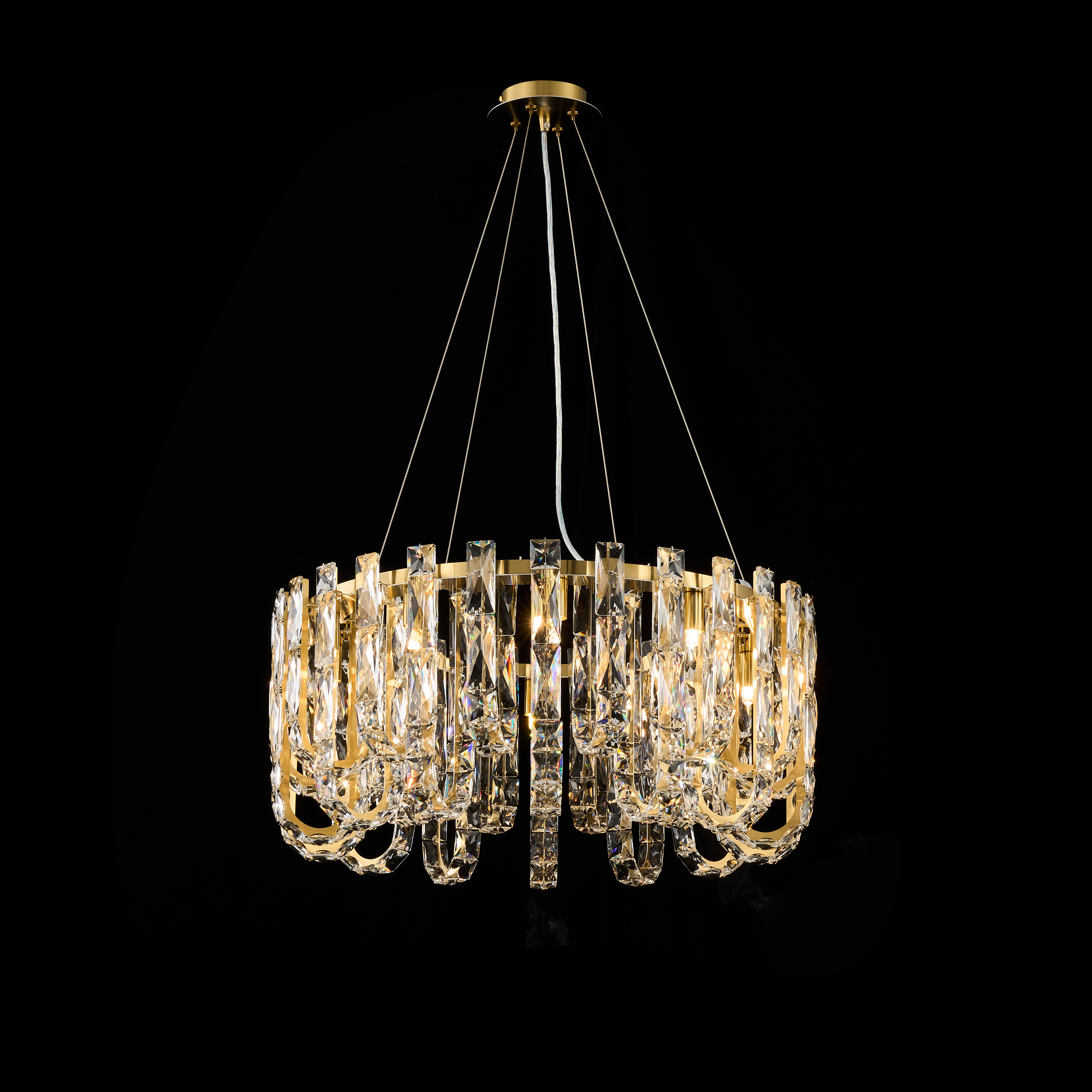 Коллекция Infinity включает в себя роскошные люстры и бра, золотой каркас которых украшен цепочками из скрепленных между собой пластин из прозрачного хрусталя высшего качества. Они крепятся к основанию с внешней и внутренней стороны и образуют арочки, которые создают эффект бликов и необычную игру света, что помогает подчеркнуть красоту и изысканность вашего интерьера.