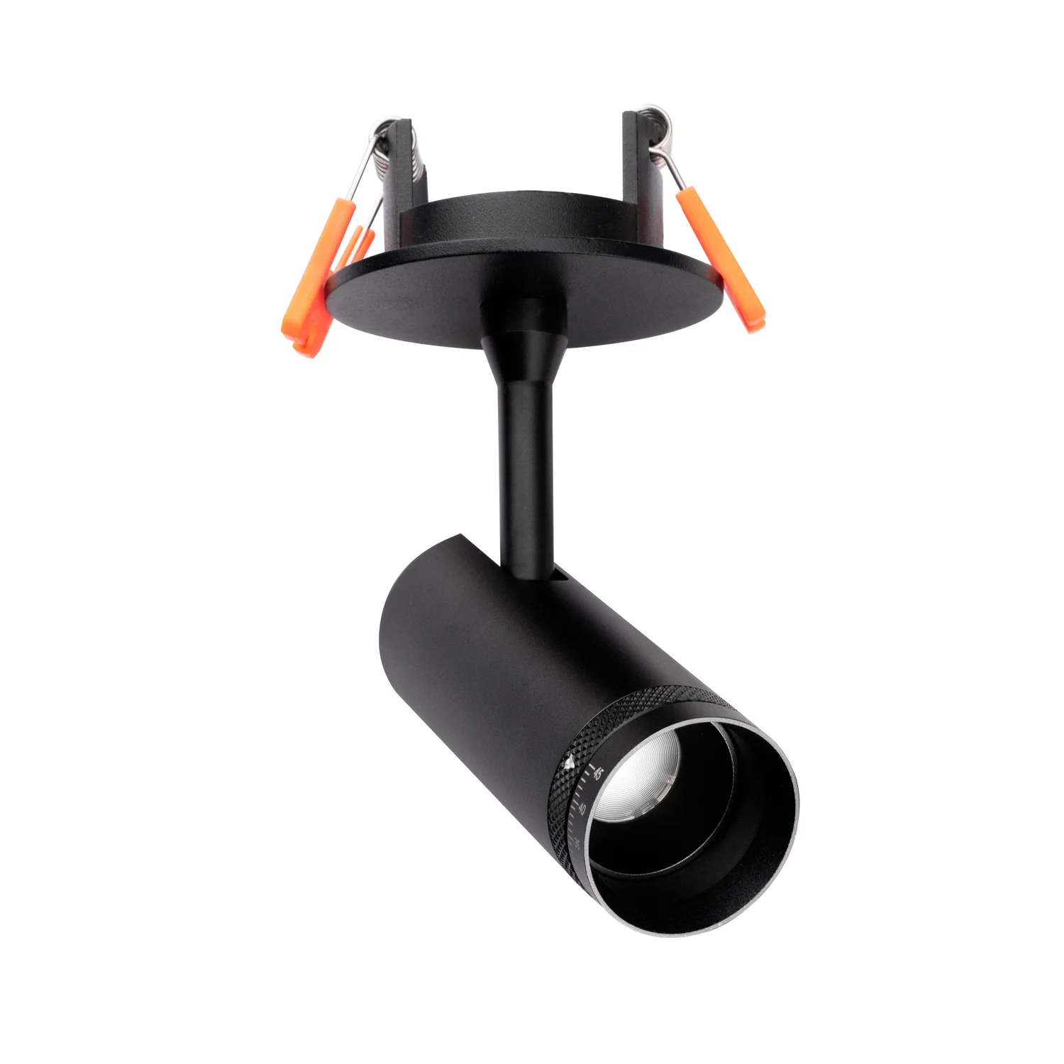 Alterno — это встраиваемые потолочные споты с поворотным плафоном, предназначенные для акцентной подсветки. Они подходят для установки как в потолок из гипсокартона, так и в натяжной. Угол рассеивания света варьируется от 15 до 45 градусов. Цветовая температура регулируется в диапазоне от 3000 до 6000К, а коэффициент цветопередачи составляет CRI >90. Все органы управления регулировками вынесены на корпус светильника, что упрощает управление и настройку. Благодаря компактным размерам и возможности выбора белого или черного цвета корпуса, споты Alterno станут отличным решением для акцентной подсветки и позволят фокусировать внимание на подсвеченном предмете.