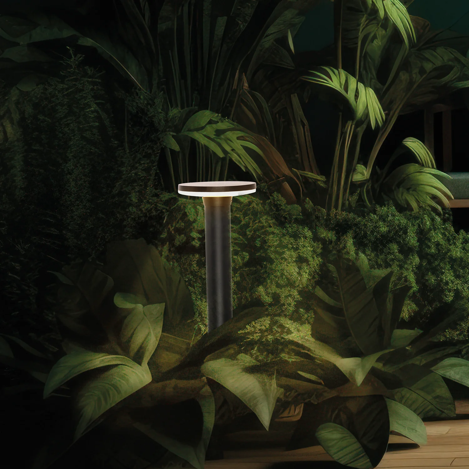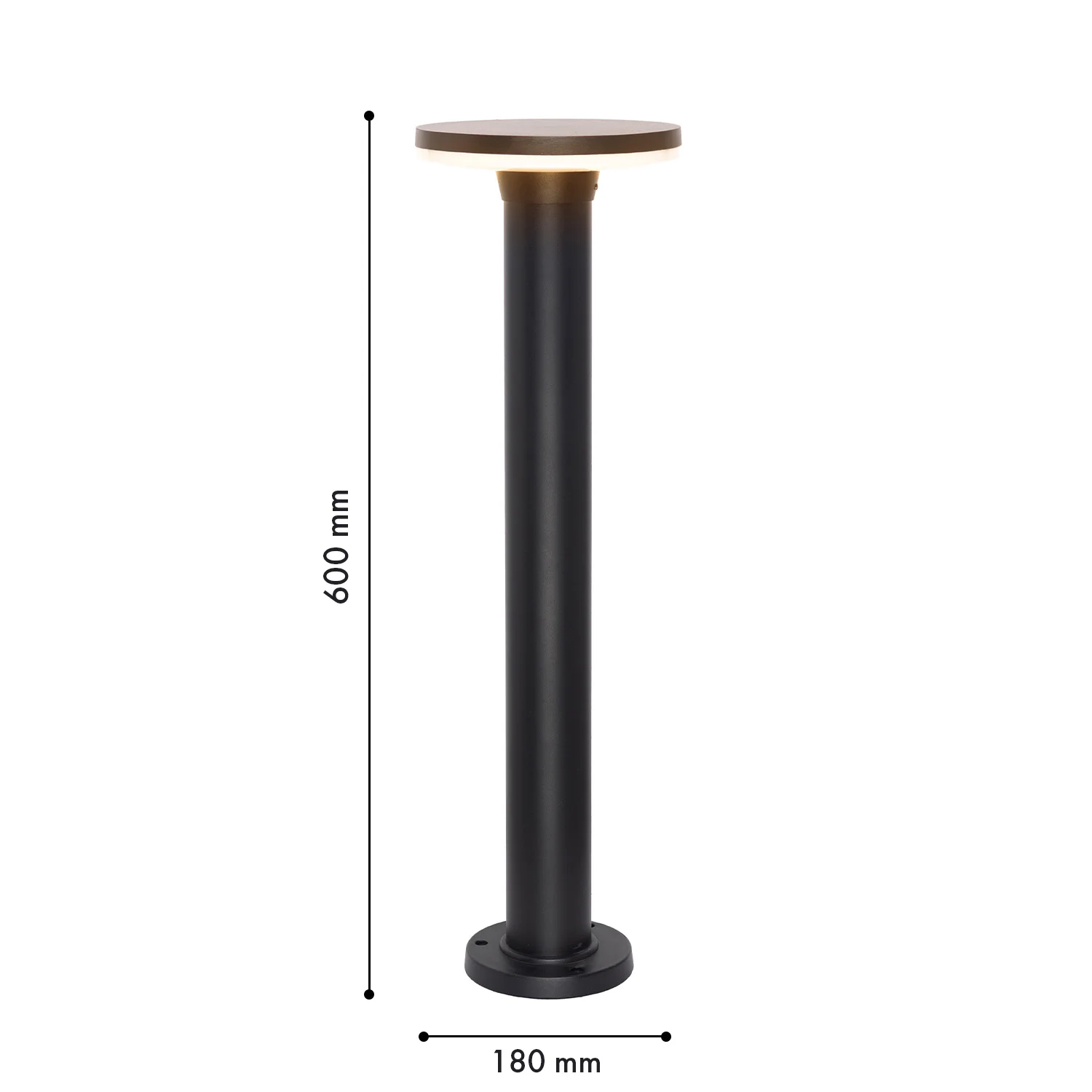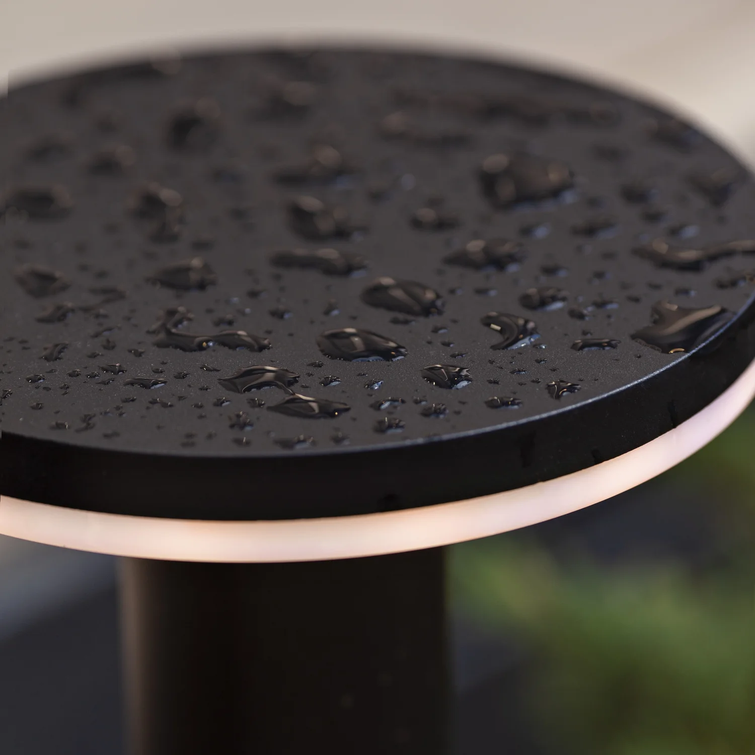 Уличный столбик Mash, изготовленный из металла и окрашенный в черный цвет, отлично подойдет для акцентного освещения вашего участка. Светильник имеет круглую форму и напоминает грибок, под широкой верхней частью находится LEDлента, прикрытая рассеивателем из белого акрила. Такая конструкция позволяет светильнику создавать круглое световое пятно вокруг себя и эффективно освещать дорожку к дому, невысокие кустарники или цветник.