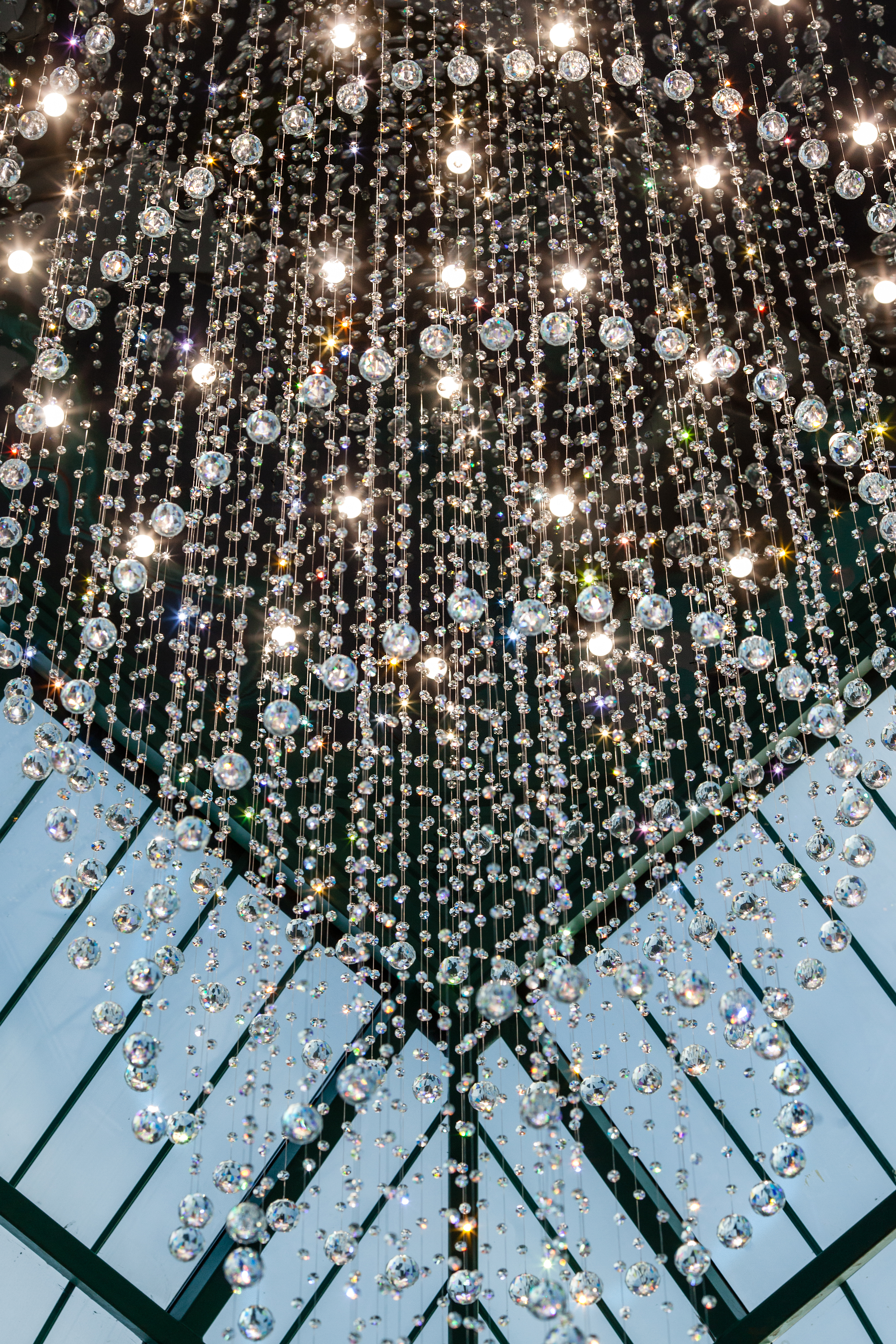 Эта люстра — настоящий световой водопад, отражающий естественный свет и добавляющий пространству ощущение воздуха и движения.