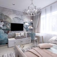 Детская комната для маленькой принцессы получилась нежной, как зефирка, благодаря талантливым дизайнерам студии Shirko. Прекрасная легкая и воздушная люстра коллекции светильников Pajaritos отлично вписалась в интерьер комнаты.