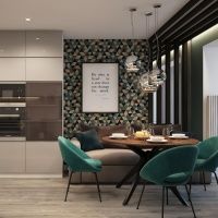 Проект современной и стильной кухни. Красивое сочетание цветов и отлично подобранные подвесы Erbsen от Favourite.