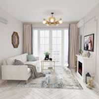 Светлая гостиная с камином выглядит очень уютно. Находиться здесь в холодный зимний день одно удовольствие. Приковывает внимание и необычная люстра Favourite (2356-5P). Эта солнечная коллекция, Sonnenblume – технологическое воплощение подсолнухов. Декоративный элемент, состоящий из золотого диска со стеклянным плафоном используется для создания различным конфигураций светильников - люстр, подвесов и бра.