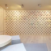 «Дачный ответ» поработал на контрастах и сделал активно-спокойную детскую с подиумом и шведской стенкой. А ещё автор проекта смешала две культуры: японскую и скандинавскую. Освещение детской было продумано до мелочей. Игровую зону освещают 8 поворотных спотов Favourite (2455-1U) коллекции Kinescope. Универсальные споты, с помощью которых можно осветить любую зону.
