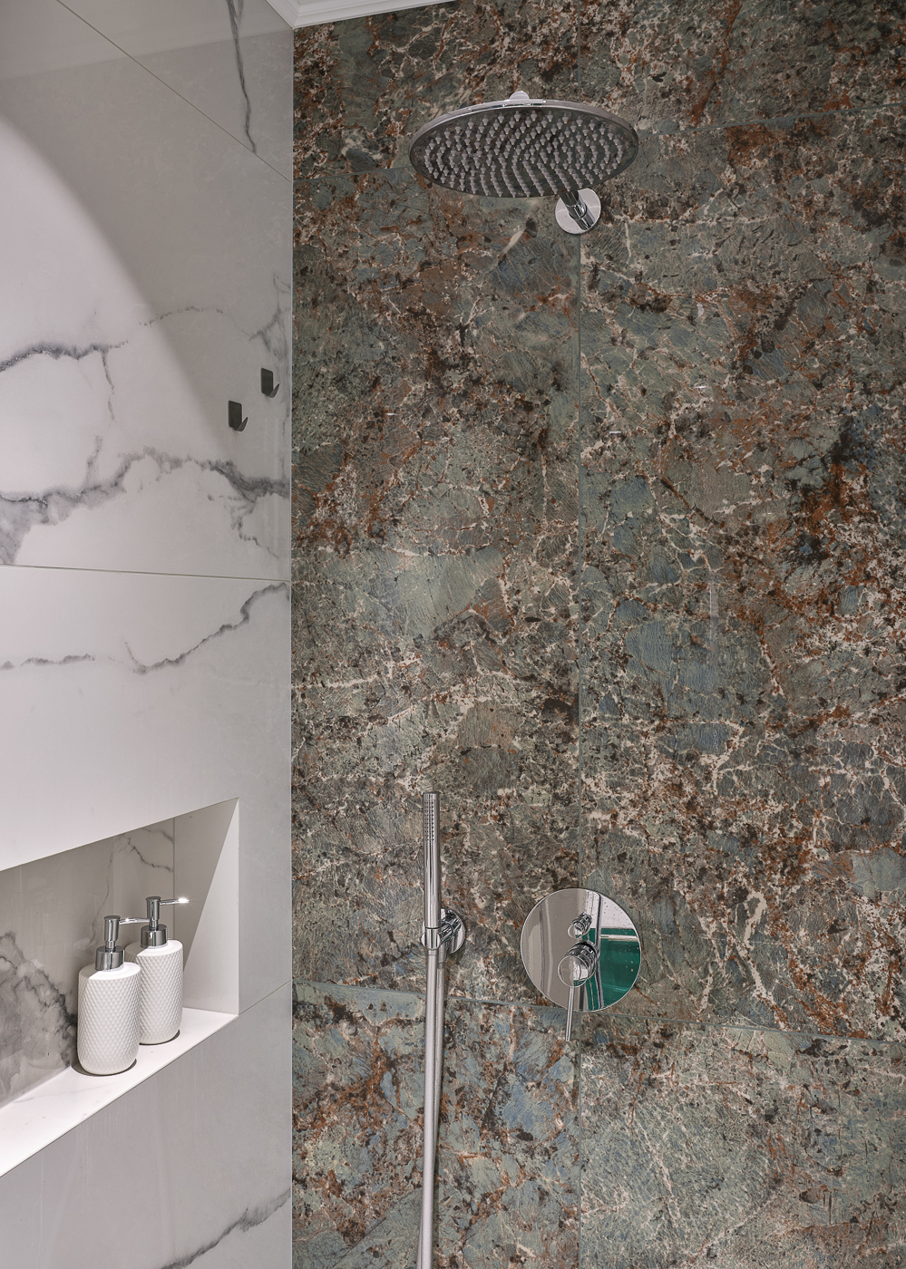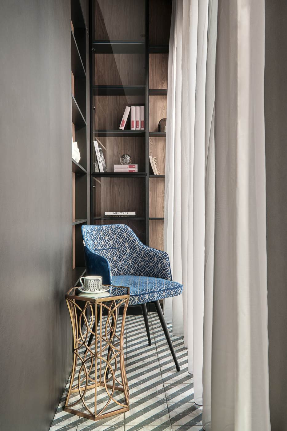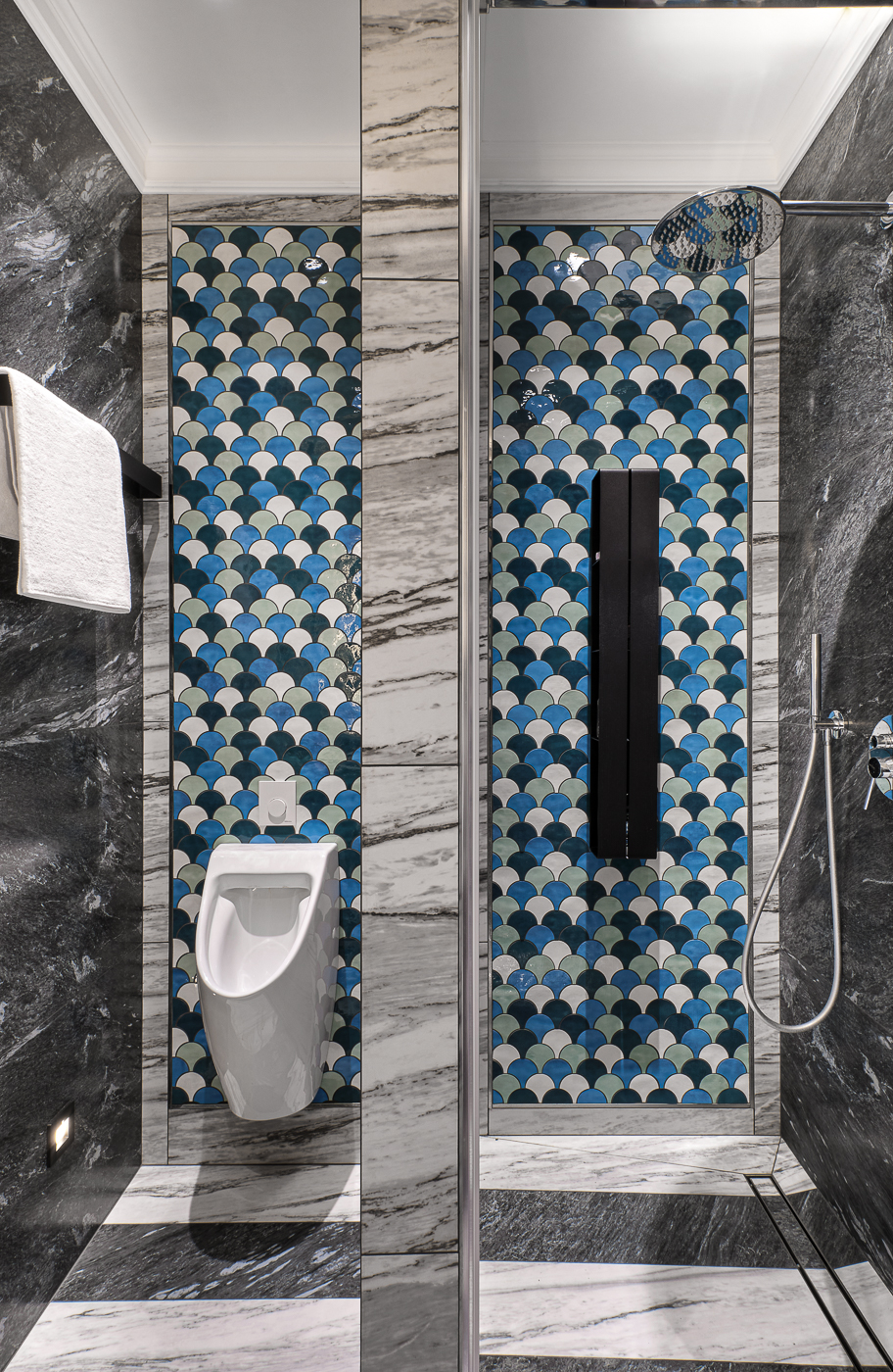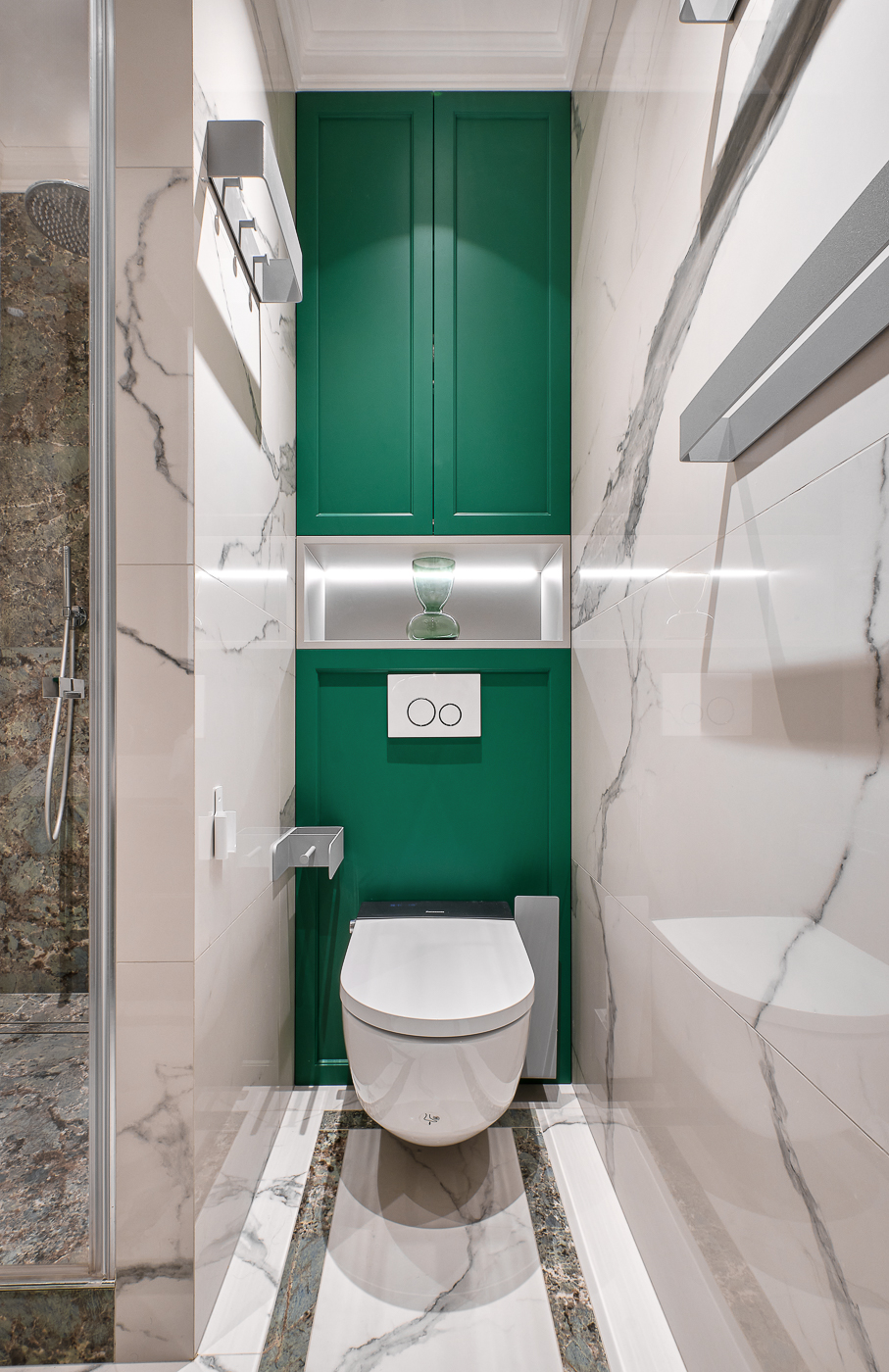 Заказчики коллекционируют фигурки черепах из разных стран — и дизайнер превратил этот личный код в тонкий мотив, который сквозит в интерьере: на зеркале, в графике, в аксессуарах.