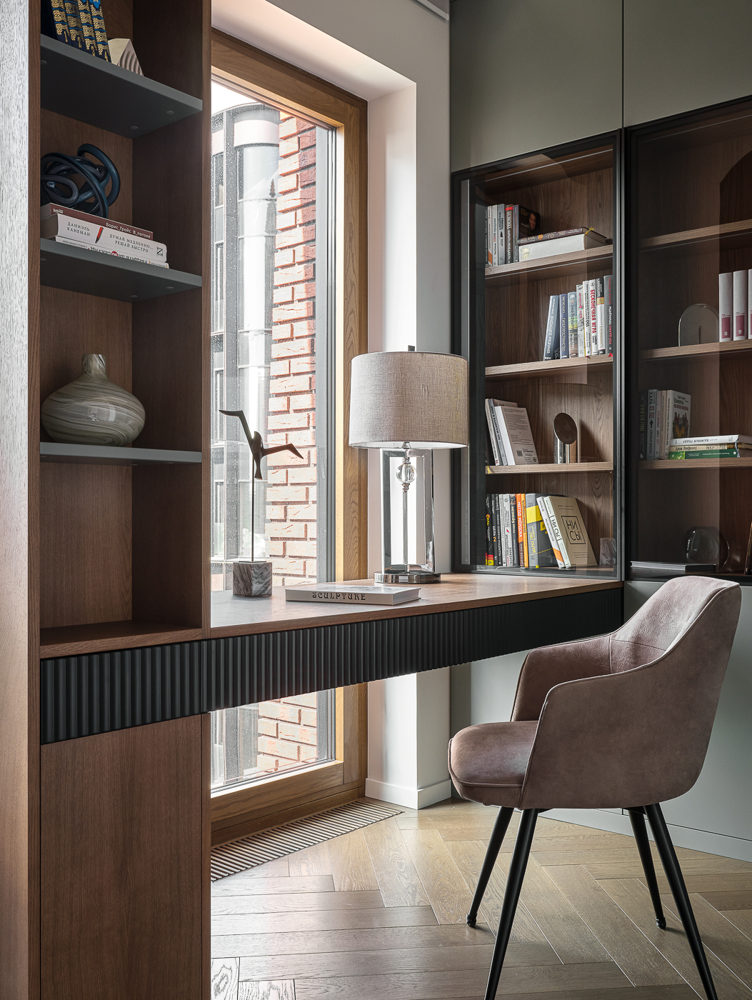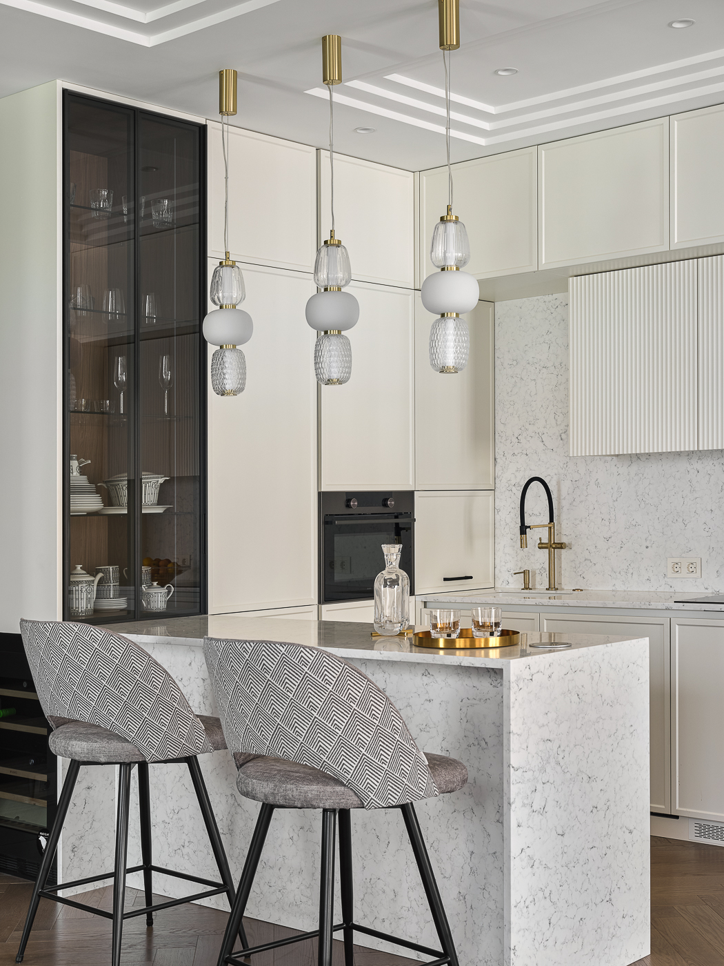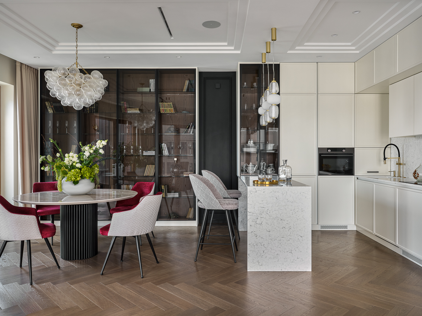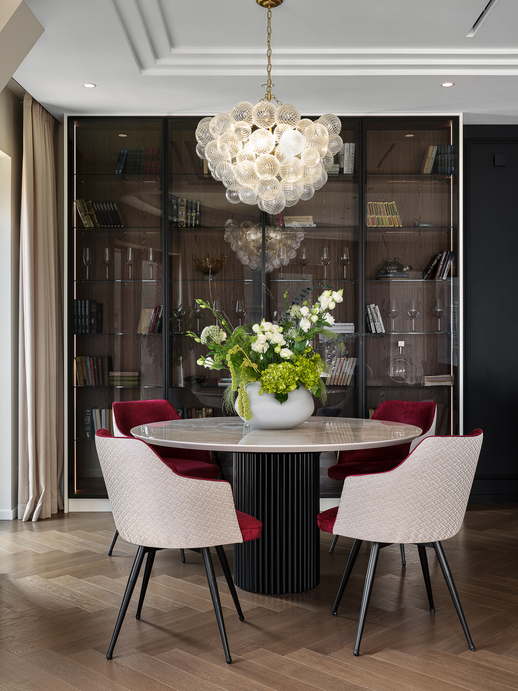 Интерьер получился зрелым и живым — где классика дышит современностью, а свет превращает пространство в эмоцию.