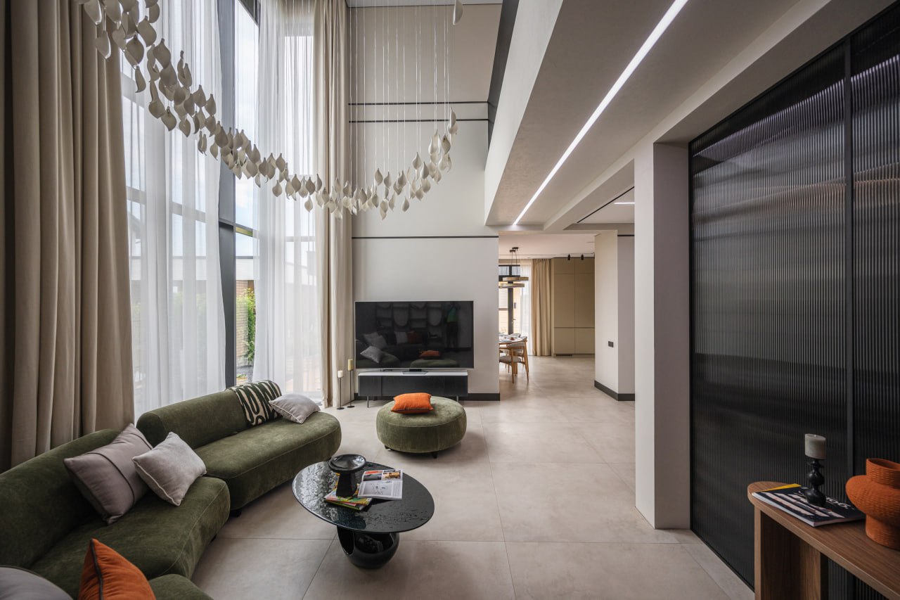 Для проекта дома «Агат» (https://t.me/domforest43/2107) компании «Дом Форест» (https://dom-forest.ru/) мы создали авторскую люстру по задумке дизайнера проекта. Каскад из более чем 200 нежных керамических лепестков молочно-белого цвета, подсвеченных светодиодными лампами, украсил гостиную дома.